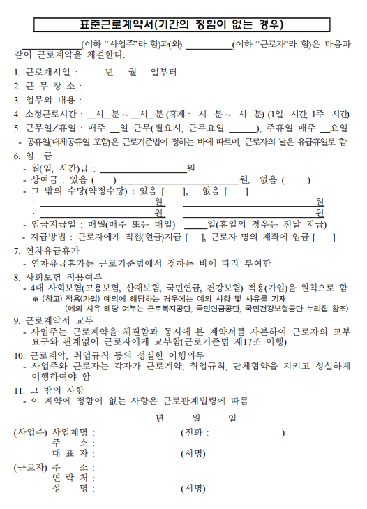 *추가 : 아르바이트도 꼭 근로계약서를 작성해야 합니다.